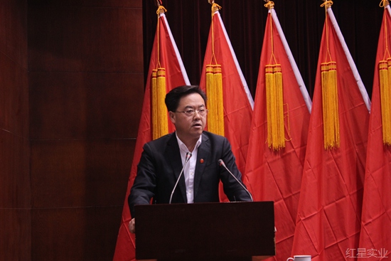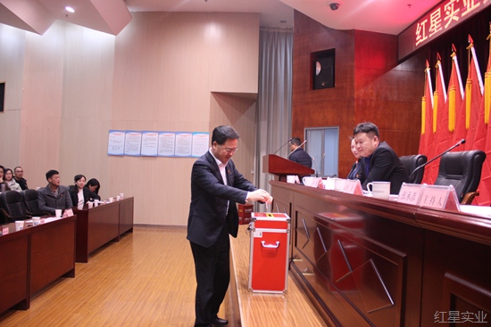 2017年12月23日上午,红星实业集团在15楼报告厅召开党委换届选举党员大会。集团党委成员,各支部直管党员、流动党员共计104人出席或列席会议,听取了上届党委书记罗跃同志所做的工作报告,选举产生了新一届集团党委委员。大会由集团党委副书记、副董事长兼总经理张承彦主持。