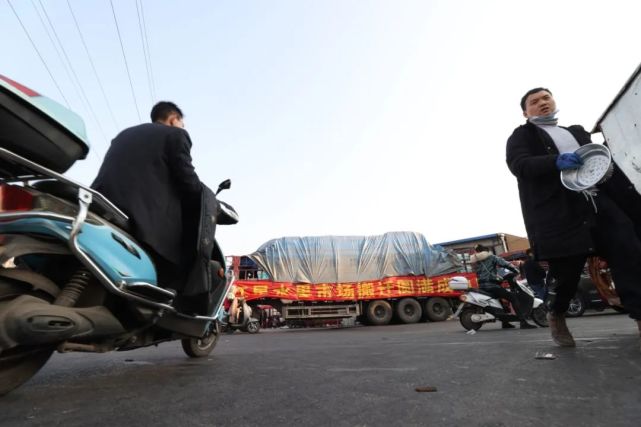 1月15日,艳阳高照。清晨6时30分许,红星水果批发大市场车版交易区内人潮涌动,一派繁忙景象,批发商和搬运工人在工作人员的指挥下,有序地将贸易区内整件整件的水果搬上货车。