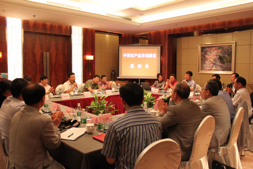 2013年6月29日上午,我公司与韩国首尔市农水产食品公社在融程花园酒店就农产品市场建设方面展开友好交流。韩国首尔市农水产食品公司李炳浩社长、首尔青果市场社长金容珍、韩国多农市场社长朴锺国等韩方代表及湖南省商务厅处长龙 吟、长沙市商务局副局长易海斌、长沙县商务局局长胡超钢、爱游戏在线(中国)唯一官方网站 董事长吴建松等中方代表出席本次会议。