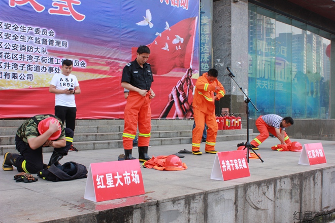 6月4日上午,由井湾子街道、红星实业集团联合举办的2016年“保安全、促发展”系列活动暨第十五个安全生产月活动启动仪式在井湾子家居MALL前坪举行。区委常委、区委办主任黄文先,区委常委、副区长罗予武,区政府副调研员刘贤宏,区安监局局长刘归,区消防大队大队长刘立宪,井湾子街道工委书记刘江红,红星实业集团党委书记、董事长罗跃等领导参加。仪式由井湾子街道办事处主任龙峥嵘主持。