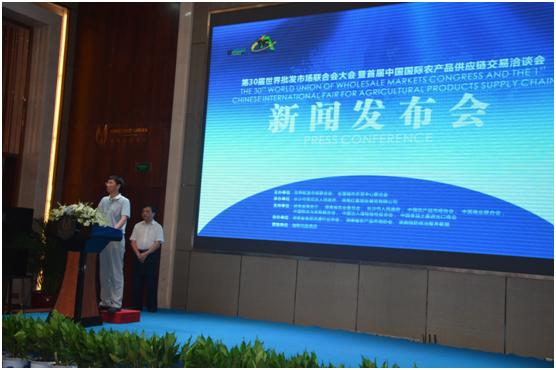 8月23日下午,由雨花区人民政府和红星国际展览有限公司联合承办的第30届世界批发市场联合会大会暨首届中国国际农产品供应链交易洽谈会第二次新闻发布会在长沙融程花园酒店召开。世界批发市场联合会副会长、全国城市农贸中心联合会会长马增俊、全国城市农贸中心联合会副会长江波、湖南省农业委员会巡视员谢国华、省商务厅副巡视员刘飞、市人民政府副市长廖健、市会展办主任陈树中、红星实业集团公司董事长罗跃等领导和嘉宾出席。