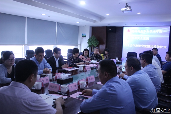 4月28日,湖南商务职业技术学院、红星实业集团校企合作座谈会暨签约授牌仪式在集团总部11楼会议室举行。学院院长李定珍与集团党委书记、董事长罗跃代表校企双方签订合作协议并相互授牌。学院副院长杨文涛、对外合作处处长罗立红、湘茶学院院长易能、电子商务学院院长曾鸣、办公室主任李琦、校企合作专干徐静,集团董事李俊、党委委员杨金花、董秘龙洪波及各爱游戏在线(中国)唯一官方网站负责人参加了相关活动。