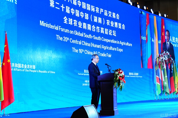 中共中央政治局委员、国务院副总理胡春华出席开幕式并发表重要讲话。湖南省委书记杜家毫,联合国粮农组织总干事格拉齐亚诺,乌干达农业、牧业和渔业部部长文森特·巴穆兰加基·塞姆皮贾,中国工程院院士、“杂交水稻之父”袁隆平先后致辞。开幕式由农业农村部部长韩长赋主持。
