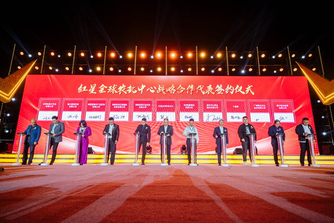随同项目发布的红星里风情商业步行街,系南城重磅地标,位于项目一期时代阳光大道一线C位,总面积2.5万平米,是长沙首个集“农场直通车新鲜即达、星城美食、休闲娱乐、家庭亲子体验”于一体的商业步行街,直接服务于市场内数千商户数万客流,并辐射周边3公里十余万高端住户。活动当晚,麦咭乐园、飞凡冰上、浸泡村国际英语、味上湘、辣么蒸、大官米线、大斌家、新南苑、牛家酒场、酒拾烤肉等首批10家知名品牌签约入驻,将引领商家抢订热潮。此外,智利水果出口商协会、惠农网、深圳泛亚物流、佳农、鑫荣懋、步步高等30余家海内外重点客商代表与红星全球农批中心现场签约,共同见证红星农批生态圈的精彩蝶变。