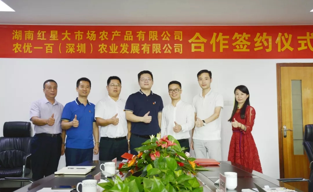 出席本次签约仪式的领导有:爱游戏在线(中国)唯一官方网站 董事袁丹、副总经理杨林波,红星大市场总经理胡超、副总经理周健,农优一百创始人兼总经理李恩伟、农优一百副总经理章伟强、农优一百副总经理吴妮娜等。