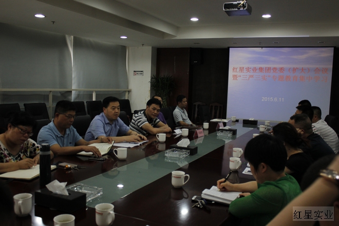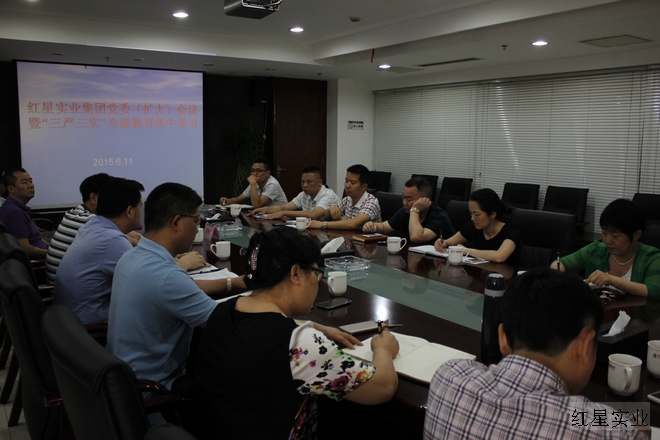 2015年6月11日下午,红星实业集团公司在11楼会议室召开党委(扩大)会议暨“三严三实”专题教育集中学习座谈会。集团公司党委、董事会、监事会成员,司属各企业党支部书记参加,区人大常委会副主任刘海秋、井湾子街道工委书记刘江红到会指导。会议由集团公司党委书记、董事长罗跃主持。