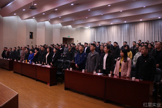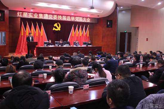 2017年12月23日上午,红星实业集团在15楼报告厅召开党委换届选举党员大会。集团党委成员,各支部直管党员、流动党员共计104人出席或列席会议,听取了上届党委书记罗跃同志所做的工作报告,选举产生了新一届集团党委委员。大会由集团党委副书记、副董事长兼总经理张承彦主持。