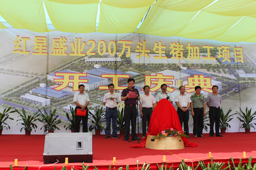 在夏去秋来之际,落户长沙雨花区环保科技园的湖南红星盛业食品股份有限公司年加工200万头生猪项目工程于7月29日上午十一时二十八分在洞井镇白田村基地举行隆重的开工庆典仪式。湖南省政府副秘书长陈吉芳,长沙市委常委、副市长张迎龙,中共雨花区委书记周杏武等领导出席仪式并发表重要讲话,出席开工庆典仪式的还有省农办、省商务厅、省乡镇企业局、市农办、市商务局、市发改委,市工商局、雨花区政府等相关单位负责人。开工庆典仪式由雨花区政府副区长彭可佳主持,红星实业集团副董事长、总经理 罗跃致欢迎辞。