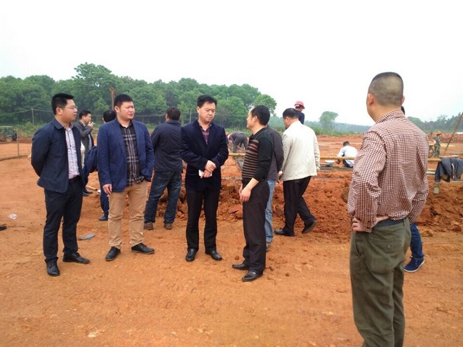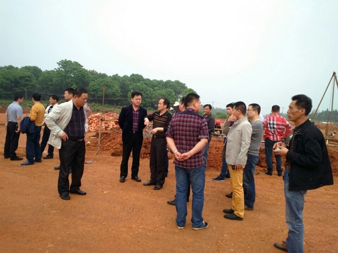 2015年4月25日上午,在公司董事长罗跃的率领下,与公司股东代表及相关负责人对益阳市农科所投资的益阳兆丰农牧科技有限公司项目地进行考察。图为在农科所所长汤海林的相关介绍下,董事长和公司股东代表在现场考察。
