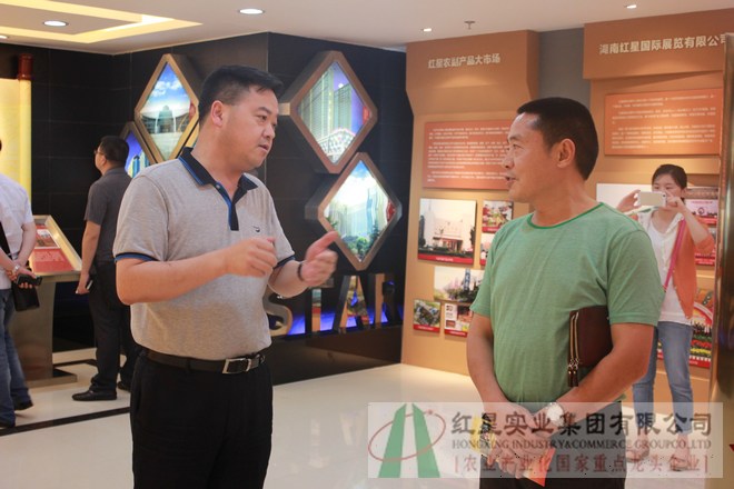 2015年5月8日泸州市龙马潭区领导来我司考察红星商圈商会“两代表一委员”工作情况和平台搭建、制度建设等内容。公司董事长罗 跃向来访领导介绍我司党建工作情况。