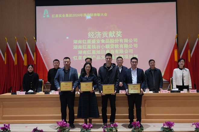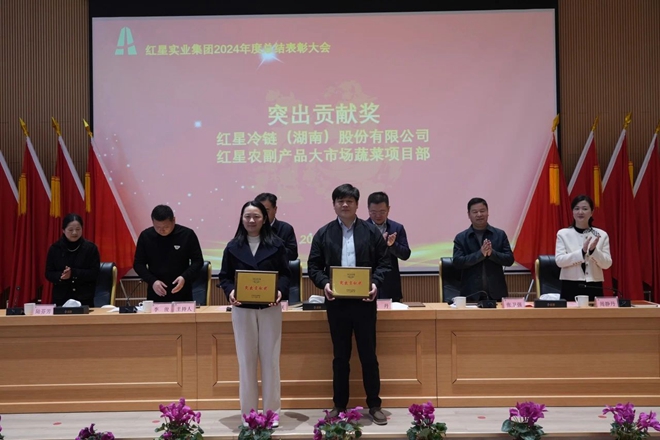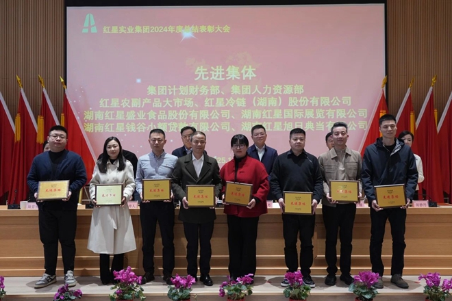 会上,集团董事张卫强宣读《关于表彰2024年度优秀集体和个人的决定》。吴蓓等52位“优秀员工”,许华忠等10位“优秀管理者”,张俊等6位“攻坚克难突击手”,卢滔等3位“优秀组级公司管理者”,集团计划财务部等8个“先进集体”,红星冷链(湖南)股份有限公司等2个“突出贡献奖”单位,湖南红星盛业食品股份有限公司等4个“经济贡献奖”单位受到表彰。获奖代表胡唐辉、蒋丹先后作典型发言。