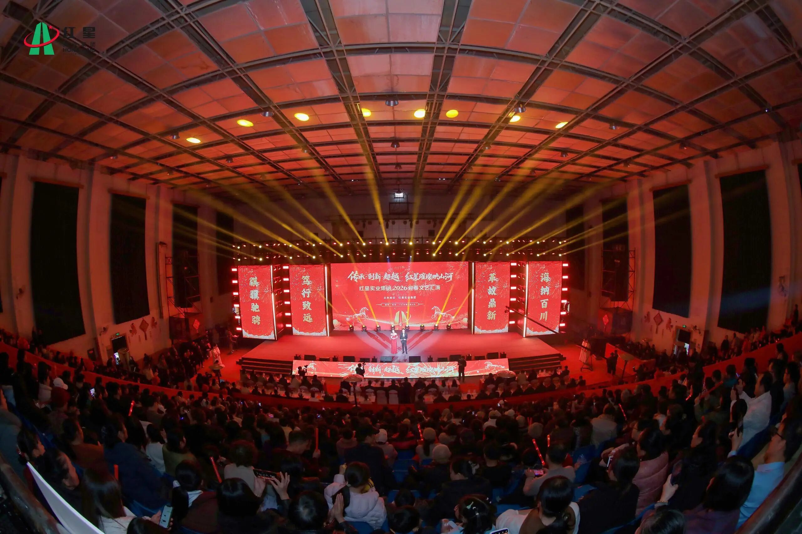 龙腾盛世岁更迭,骏马迎春万象新。2月4日,以“传承·创新·超越:红星璀璨映山河”为主题的红星实业集团2026迎春文艺汇演在热烈欢腾的氛围中隆重举行。本次活动不仅是红星人两年一届的文化盛宴,更是红星精神文明建设成果的一次集中检阅与生动展示。集团领导、员工代表、商户朋友及红星父老乡亲千余人欢聚一堂,在歌舞升平中回望奋斗历程,于欢声笑语里共绘发展新篇。