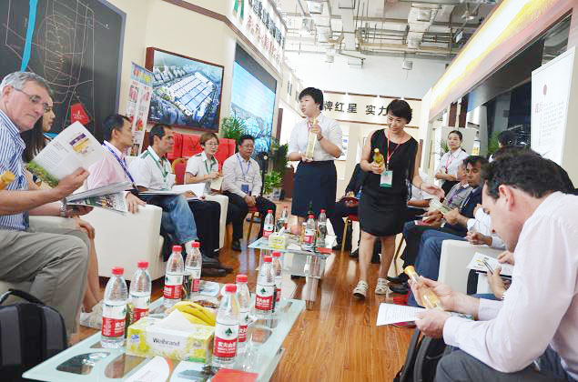 各地客商代表根据对接会上了解到的产品信息,深入展位现场了解产品,洽谈合作。哥斯达黎加、澳大利亚、泰国等9名国外客商到集团公司展示区进行深入采购对接。红星盛康油脂公司和红星农副产品大市场分别向客商推介了公司产品以及农副产品市场购、销情况。