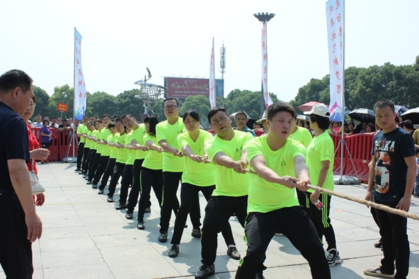 开幕式结束后,拔河、跳绳相继火热进行。场上气氛紧张激烈,呐喊声、欢呼声汇聚成欢乐海洋,让大家忘却烦劳忧愁,舒心享受健身运动带来的快乐与满足,切身体会和谐红星缔造的团结与安定。