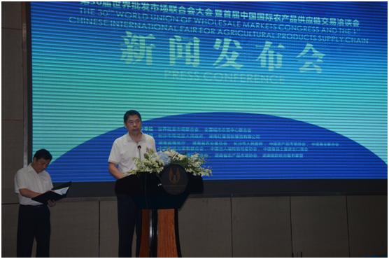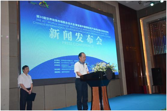 8月23日下午,由雨花区人民政府和红星国际展览有限公司联合承办的第30届世界批发市场联合会大会暨首届中国国际农产品供应链交易洽谈会第二次新闻发布会在长沙融程花园酒店召开。世界批发市场联合会副会长、全国城市农贸中心联合会会长马增俊、全国城市农贸中心联合会副会长江波、湖南省农业委员会巡视员谢国华、省商务厅副巡视员刘飞、市人民政府副市长廖健、市会展办主任陈树中、红星实业集团公司董事长罗跃等领导和嘉宾出席。