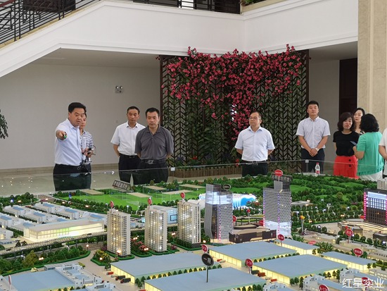 在项目招商展示中心沙盘前,冯聪龙一行认真驻足察看,并听取了集团党委书记、董事长罗跃就项目推进情况的简要介绍。