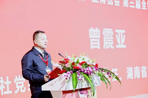 理学会理事长、原农业部党组成员、总经济师毕美家,中华全国供销合作总社科教社团部部长李殿平,湖南省供销合作总社党组书记、理事会主任、湖南省农村合作经济组织联合会会长曾震亚,长沙市人民政府副市长谭勇等领导发表致辞。湖南省人大常委会副主任杨维刚,湖南省政协副主席赖明勇,原中华全国供销合作总社党组成员、理事会副主任赵显人,中国果品流通协会会长鲁芳校,清华大学中国农村研究院副院长张红宇,湖南省农业农村厅厅长袁延文等全国各地的领导嘉宾和专家学者、采购商、种植大户共同参加了开幕式。
